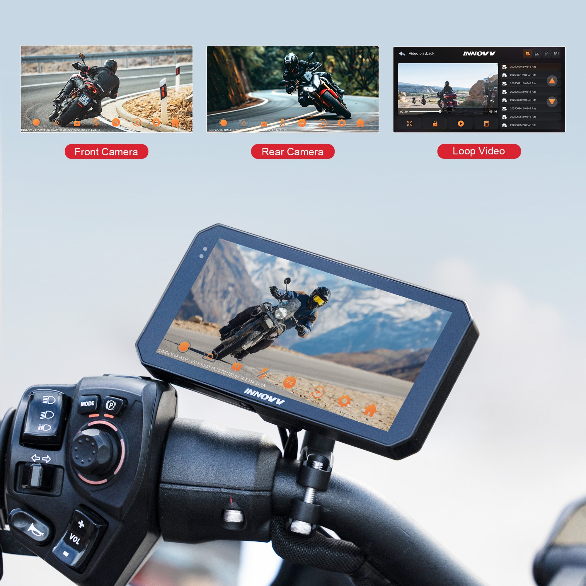 The INNOVV N2 is a universal smart display system designed for motorcycles, integrating support for cameras, GPS, and external tire pressure monitoring systems (TPMS) in one seamless unit.