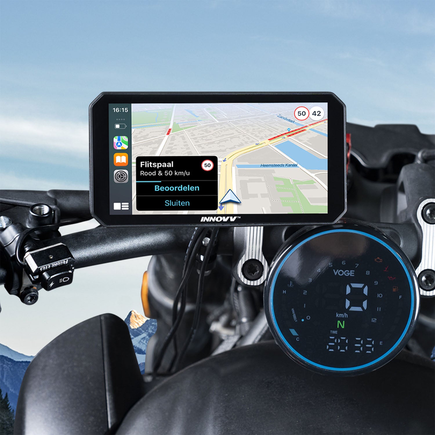 The N2 is a new navigation system from INNOVV with built-in Carplay, Android Auto, dashboard camera system and tire pressure monitoring (optional) for motorcyclists.