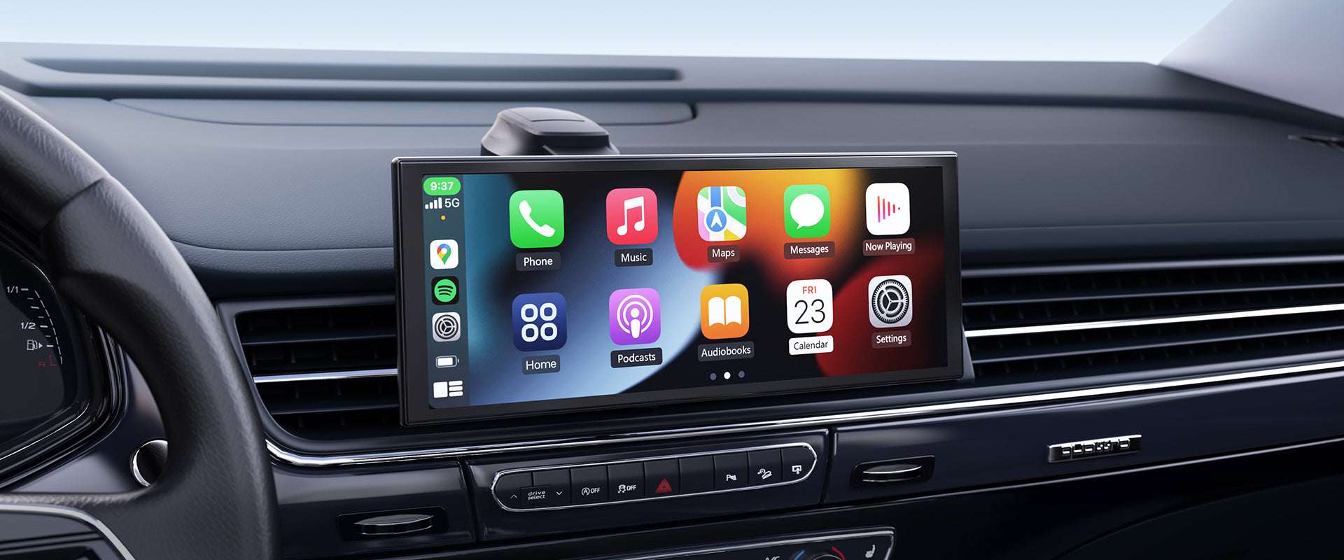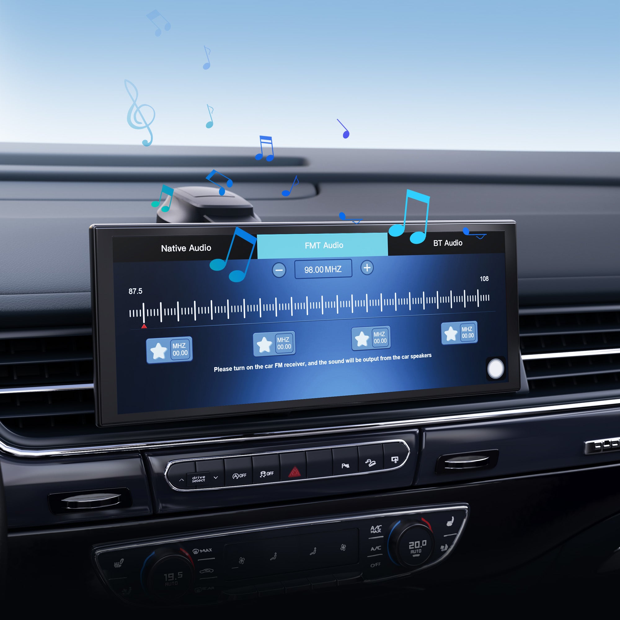The V2 CarPlay screen features advanced 2.4G/5GHz dual-band Wi-Fi and Bluetooth 5.0 technology, delivering ultra-stable, low-latency connectivity for music streaming, real-time navigation, and hands-free calls. Its Smart Dual-Band Wi-Fi automatically scans and connects to the fastest available network (2.4GHz or 5GHz) to minimize interference and maximize stability, while Bluetooth 5.0 offers extended range, multi-device pairing, and crystal-clear audio quality.