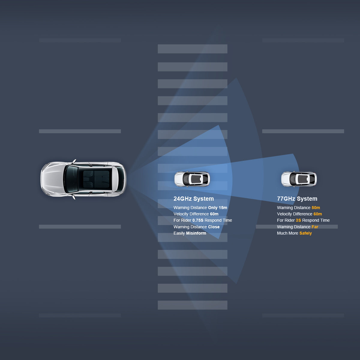 Higher‑accuracy 77 GHz automotive radar vs. 24 GHz