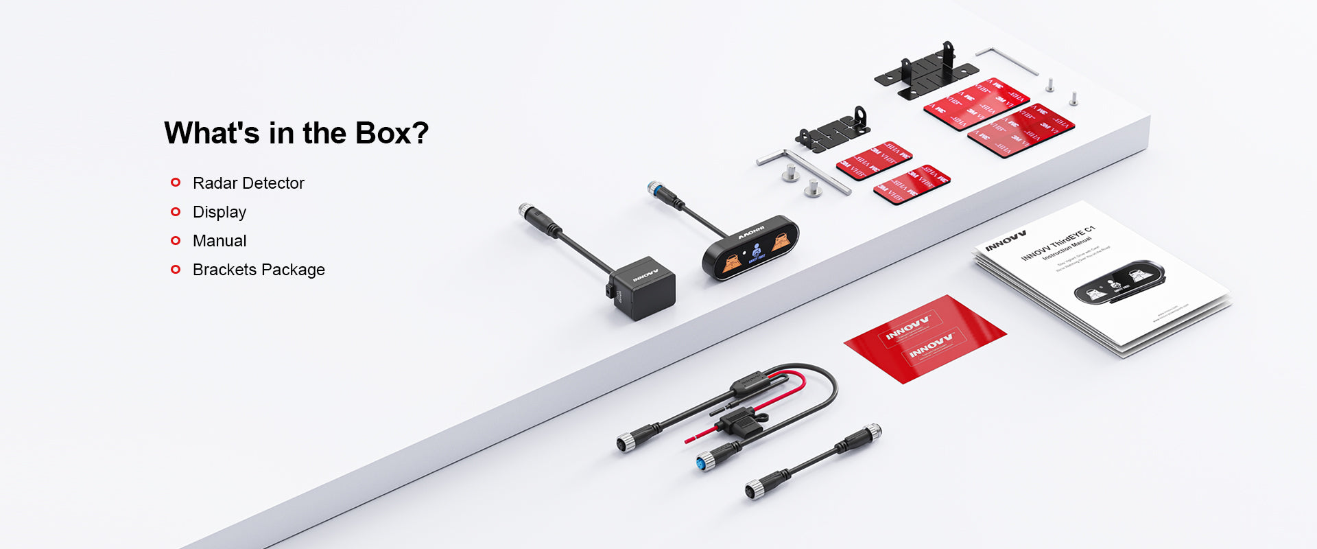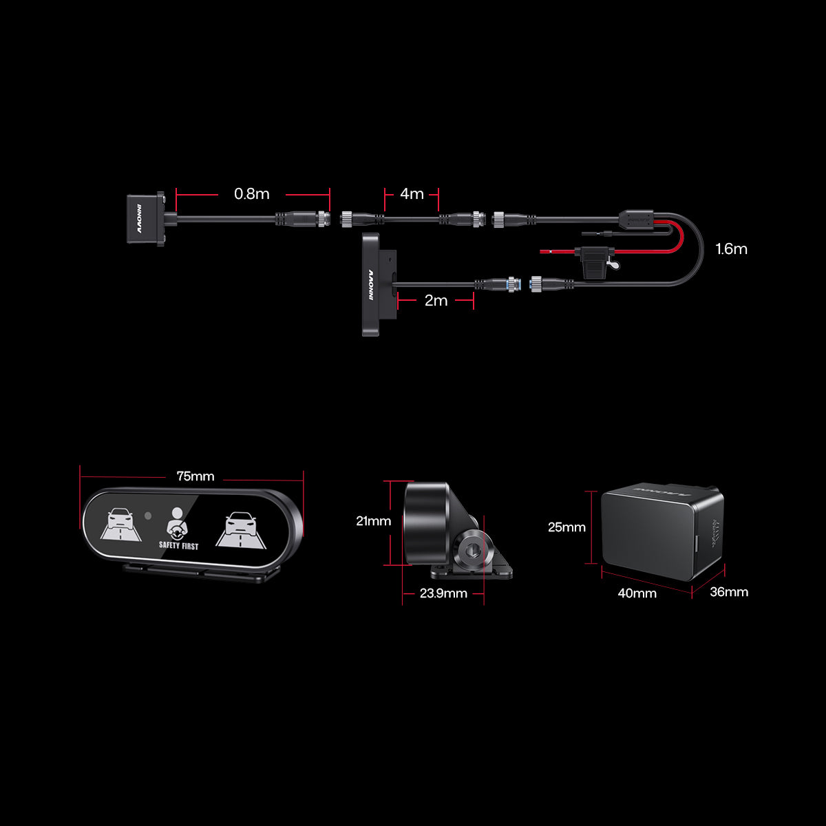INNOVV ThirdEYE C1 integrates BSM (Blind Spot Monitoring), LCA (Lane Change Assist), and RCW (Rear Collision Warning) into a single rear-side safety assist system. A single rearward millimeter‑wave corner radar provides continuous protection—from blind‑spot monitoring and lane‑change risk assessment to rear‑end collision warning—covering high‑frequency scenarios such as urban commuting, daily lane changes, highway/freeway merging, and stop‑and‑go traffic.